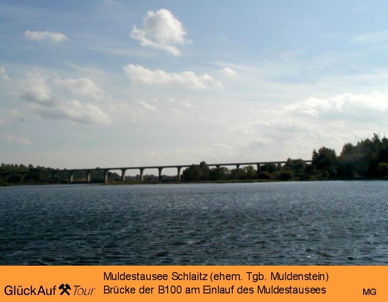 Der Muldestausee bei Pouch entstand 1975 durch die Flutung des ehemaligen Tagebaues Muldenstein. Seine Wasseroberfläche beträgt 6,3 km². An den langen Uferbereichen hat sich die Natur wieder voll entfaltet. Eine Vielzahl von Wasser- und Greifvögeln nistet hier. Rund um den See führen Wanderwege und ein Naturlehrpfad. Die schön gelegene Schachtbaude lädt zur Erholung ein.