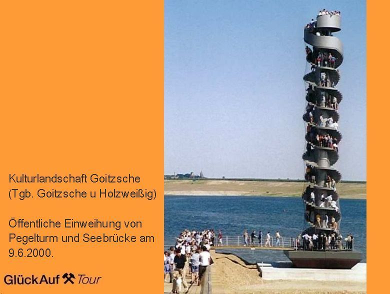 Das Sanierungsgebiet Goitzsche (offizielle Schreibweise für den Tagebau!) umfaßt die ehemaligen Tagebaue Goitzsche und Holzweißig. Die Kohleförderung wurde 1991 eingestellt. Hier entstand in unmittelbarer Nähe der Stadt Bitterfeld die Kulturlandschaft Goitzsche in einer Größe von 62 km² mit 20 km² Wasserfläche.