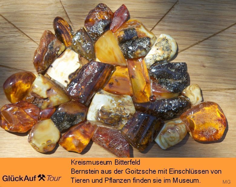 Sehenswert in Bitterfeld ist die Bergbaubegegnungsstätte u.a. mit einer Brikettpresse. Seit 2001 zeigt das Kreismuseum Bitterfeld die Geschichte der einzigen nennenswerten Bernsteinförderstäte Deutschlands in einer Dauerausstellung und als weiteren Schwerpunkt die Geschichte der Bitterfelder Region.
