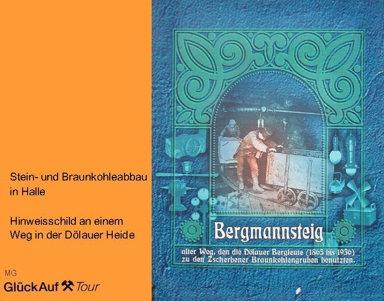 Die Geschichte der Stadt Halle wurde seit Jahrhunderten vom Bergbau geprägt. Solequellen im Bereich des Hallmarktes führten letztlich zur Entstehung der Stadt und beeinflussten maßgeblich ihre Entwicklung. Der bis ins Mittelalter zurückreichende Steinkohlenbergbau fand erst 1967 mit der Stillegung des Tiefbaus in Plötz sein Ende. Die Anfänge des Braunkohlebergbaus lagen im Jahre 1382 bei Lieskau. Mit der Stillegung des Tiefbaus „Vereinigte Karl Ernst“ in Trotha 1958 und des Tagebaus Bruckdorf 1966 endete die Braunkohlengewinnung im Stadtgebiet Halle. Der Jahrhunderte alte Bergbau prägte das landschaftliche Bild der Region um Halle durch Halden und wassergefüllte, für Sport und Erholung nutzbare Tagebaurestlöcher.