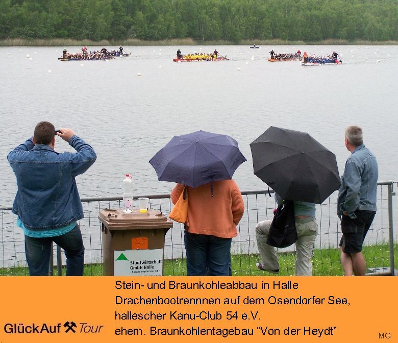 Vom intensiven Braunkohlenbergbau in Halle zeugen im Norden die Bruchfeld-seen in Mötzlich, der Hufeisensee (Wasserskizentrum) im Osten, Halden und Osendorfer See (Kanusportzentrum) im Süden und im Westen der Heidesee.