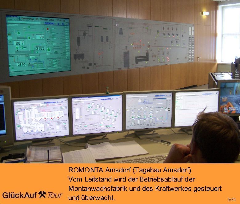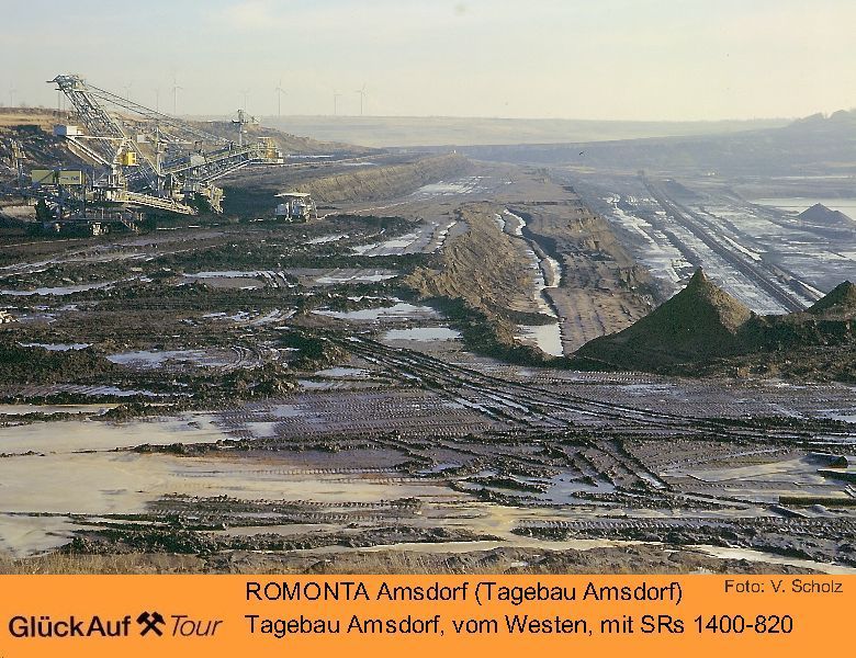 Braunkohle wird durch die ROMONTA GmbH aus dem Tagebau Amsdorf seit 1963 gefördert. Ihre Weiterverarbeitung erfolgt ausschließlich in der am Tagebau liegendenden Rohmontanwachsfabrik. Die bereits ausgekohlten Bereiche werden umfassend saniert. Eine Nutzung für Erholung und Freizeit ist vorgesehen. Ein Aussichtspunkt in der Nähe des Ortes Stedten ermöglicht eine gute Übersicht über Tagebau, Kraftwerk und Montanwachsfabrik.