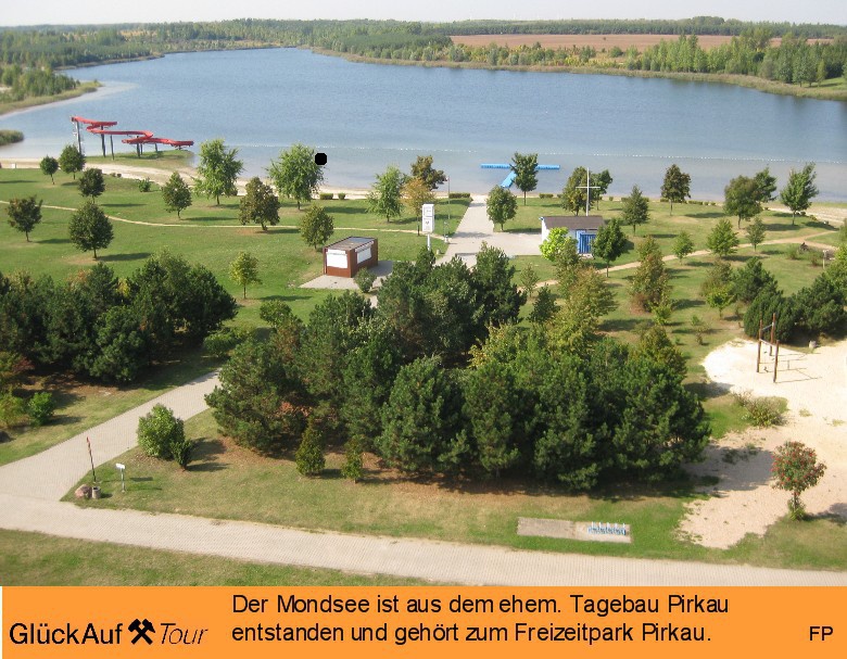 Der „Mondsee“ im Freizeitpark Pirkau entstand durch Rekultivierung des ehemaligen Tagebaues Pirkau. Durch Flutung wurde ein Naherholungszentrum mit Badestrand zwischen den Städten Hohenmölsen und Zeitz geschaffen.