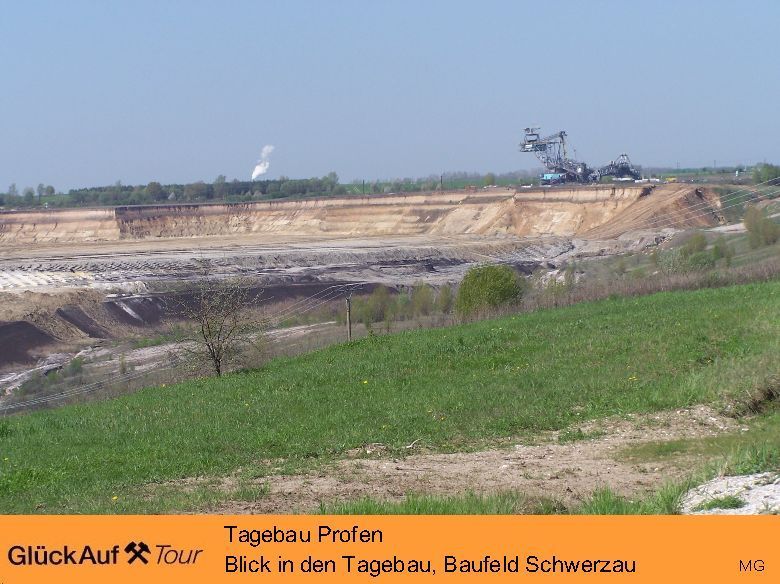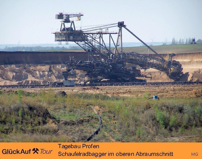 Im Tagebau Profen werden durch das Unternehmen MIBRAG jährlich bis 10 Millionen Tonnen Rohbraunkohle gefördert. Der Aussichtspunkt an der „Grünen Magistrale“ zwichen Profen und Theißen bietet einen guten Einblick in das neu erschlossene Abbaufeld Schwerzau.